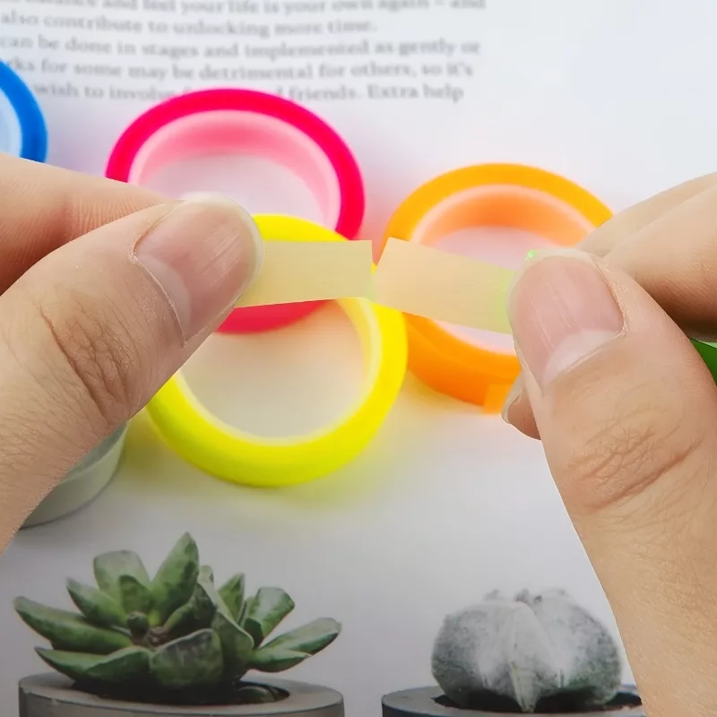 Ich benutze dieses Klebeband, um wichtige Fakten in meinem Biologiebuch hervorzuheben. Es lässt sich leicht verschieben und die Farben lassen alles herausstechen.