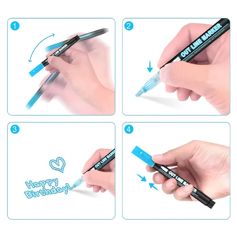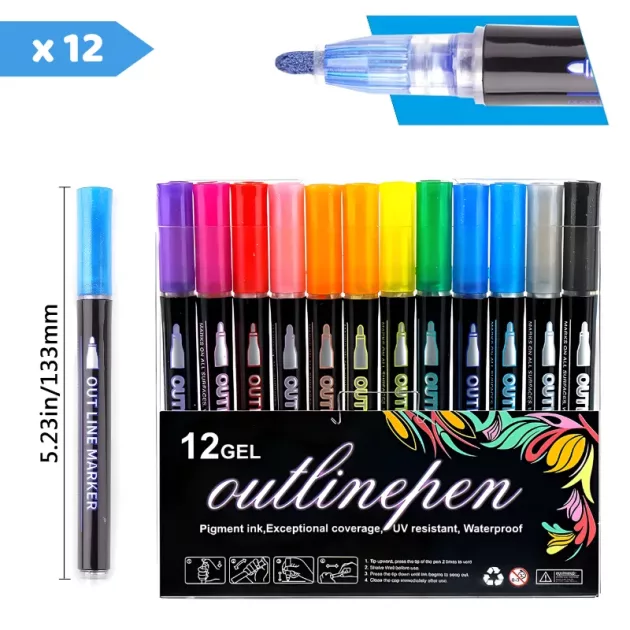 Einfache Doppelkontur - Kinder erzielen mit jeder flüssigen Bewegung beeindruckende Effekte. Das einzigartige Design verleiht allen kreativen Arbeiten sofort einen metallischen Akzent.