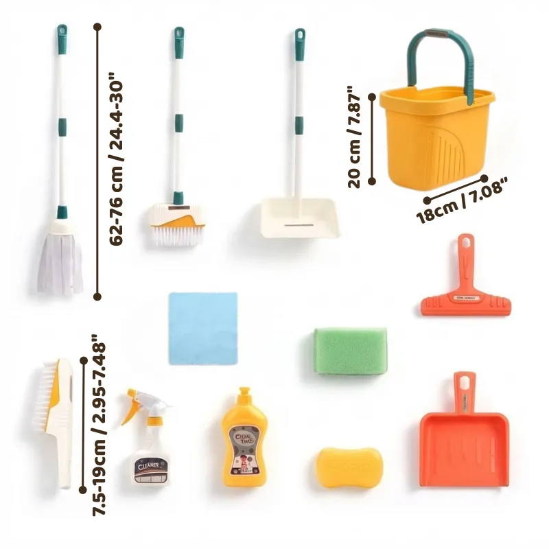Kinder lieben es, sich zu Hause hilfsbereit und wichtig zu fühlen. Dieses clevere Reinigungsset fördert positive Gewohnheiten durch spielerisches Ausprobieren. Jedes Werkzeug ist so gestaltet, dass kleine Hände es sicher und leicht greifen können. Beobachten Sie, wie die Kleinen Selbstvertrauen aufbauen, während sie jeden Tag praktische Fähigkeiten erlernen.