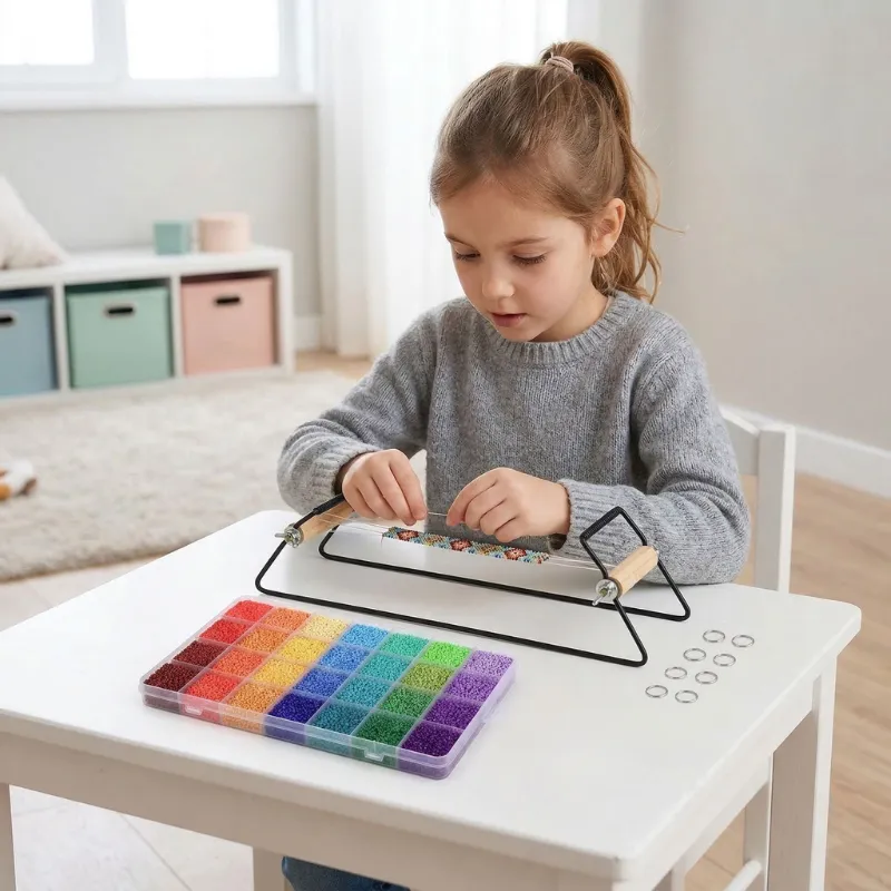 Ich mag, wie dieses Set zum Schenken anregt. Unser Kind verbringt Nachmittage damit, Armbänder zu machen, und verteilt sie dann an Verwandte – so entstehen lauter kleine, schöne Bindungen.
