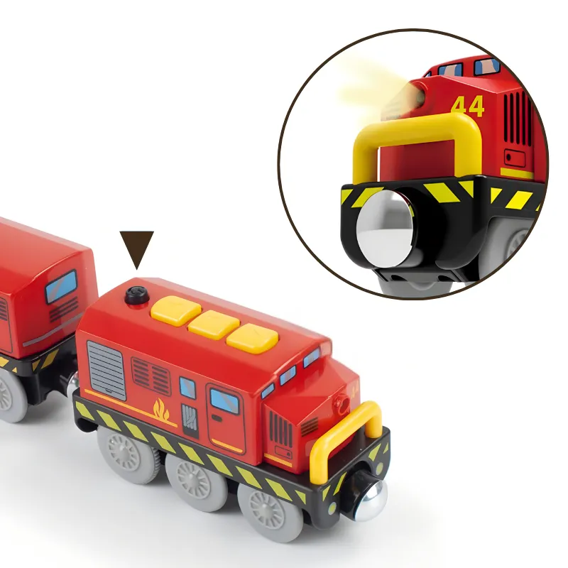 Super zum Kombinieren mit anderen Holzschienen-Sets. Die Geräusche und das Licht bringen eine ganz neue Spielfreude.