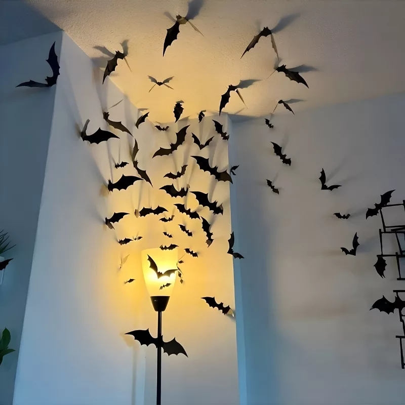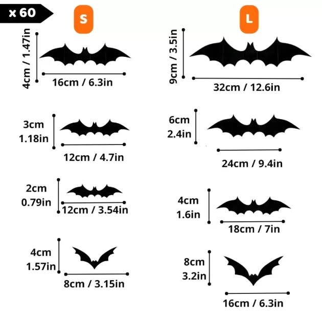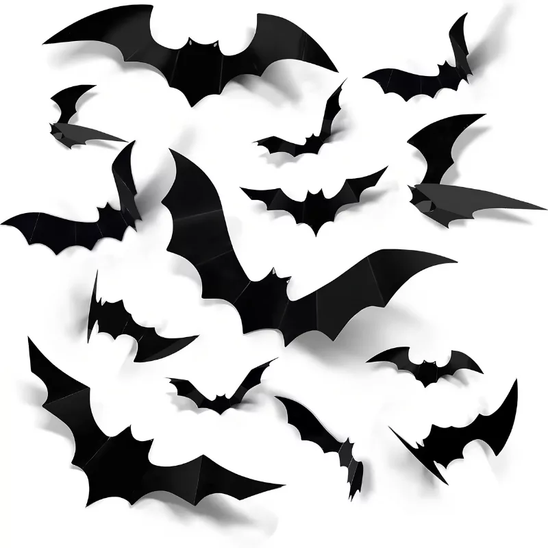 Diese Fledermäuse haben mein Zimmer richtig gruselig gemacht. Die unterschiedlichen Größen machen Spaß, weil man seine eigene Fledermausfamilie an der Tür gestalten kann!