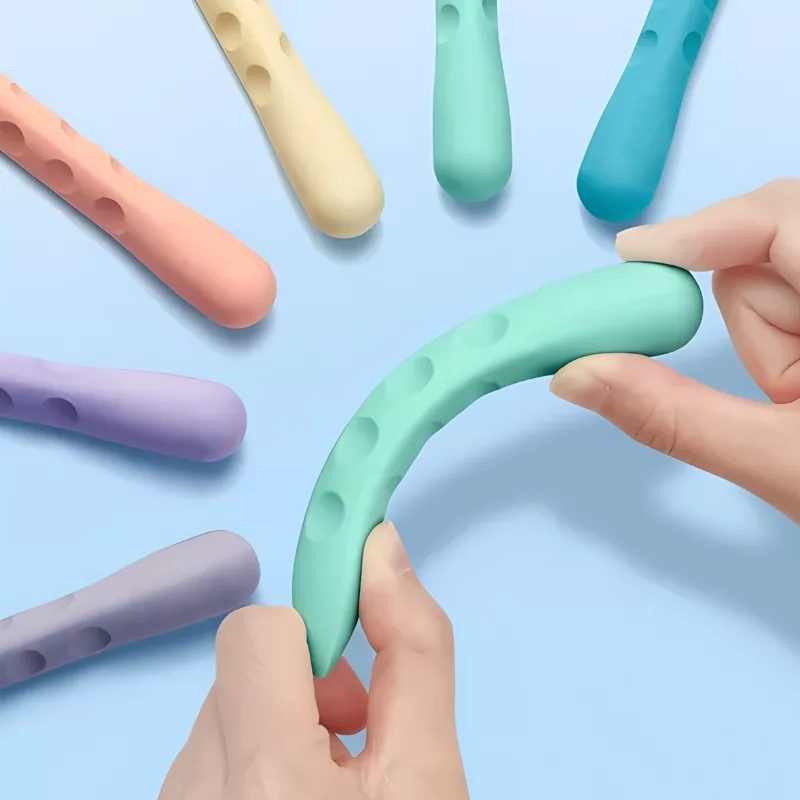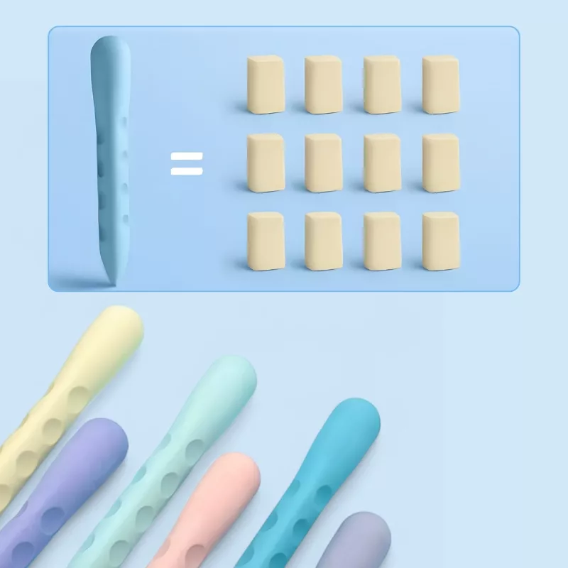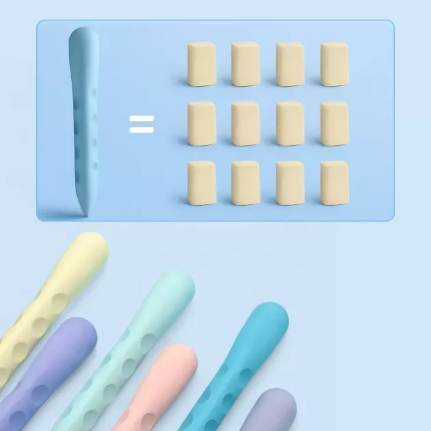 Ich liebe es, dass diese Radiergummis meine Finger richtig positionieren. Meine Lehrerin sagt, mein Schreiben ist jetzt bequemer. Außerdem verliere ich ihn nicht so leicht.