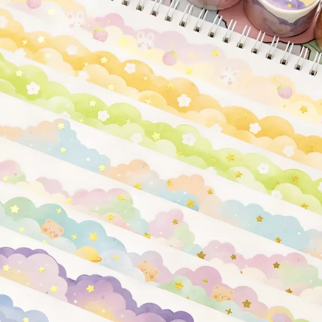 Bringen Sie jedes kreative Projekt zum Strahlen und fördern Sie das künstlerische Selbstvertrauen. Jeder Klebebandsticker zeigt entzückende Wolkendesigns und goldene Akzente. Sie sind einfach zu verwenden und regen Kinder dazu an, Notizbücher und handgemachte Karten zu personalisieren. Sehen Sie zu, wie die Ideen Ihres Kindes mit jedem farbenfrohen Streifen aufblühen.
