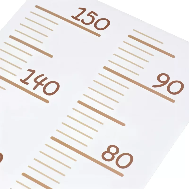 Dieser Messaufkleber war die beste Entscheidung! Kein Dreck, die Farben bleiben leuchtend und mein Sohn zeigt allen Besuchern, wie groß er geworden ist.