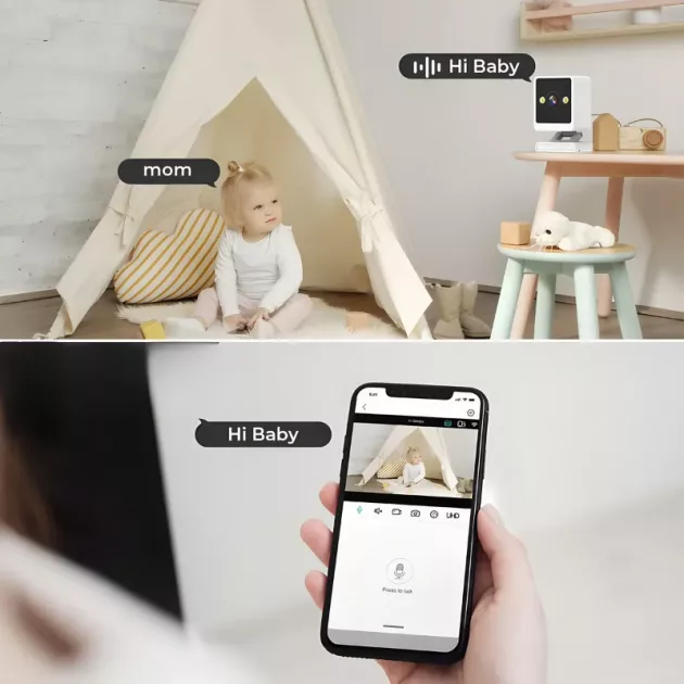 Zwei-Wege-Kommunikation - Sprechen und hören Sie über Ihr Gerät, ohne den Raum zu betreten. Beruhigen oder führen Sie Ihre Liebsten jederzeit ganz einfach.