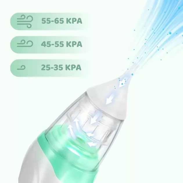 Verstellbar - Der Kidzly-Nasensauger verfügt über drei verschiedene Modi. Sie können die Einstellung wählen, die am besten zu den Bedürfnissen Ihres Babys passt.