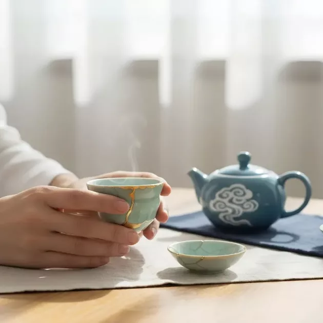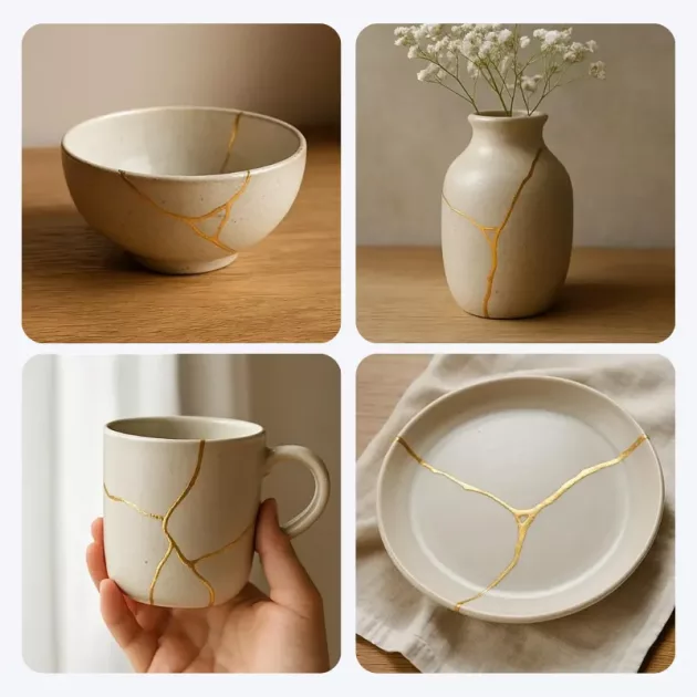 Unsere liebsten Kakao-Tassen sind nach dem Geschirrspüler gerissen. Meine Kinder haben dieses Keramik-Set benutzt, jeden Schritt befolgt, und jetzt sehen die glänzenden Reparaturlinien wie beabsichtigte Kunst aus.