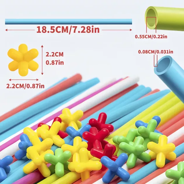 Meine Tochter liebt, wie bunt die Röhren sind. Sie verbringt jeden Morgen damit, sie auf so viele verschiedene Weisen zusammenzustecken, bevor sie zur Schule geht.