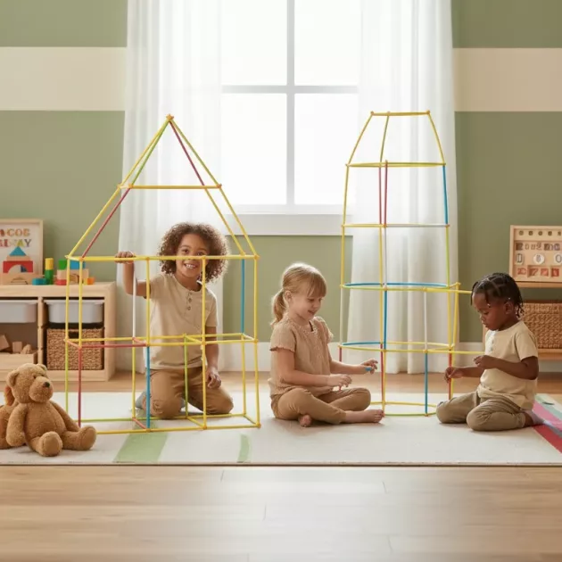 Wir haben viele Bauspielzeuge probiert, aber diese Röhren sind die Favoriten meiner Kinder. Sie haben damit sogar lustige Brillen und Hüte gebaut.