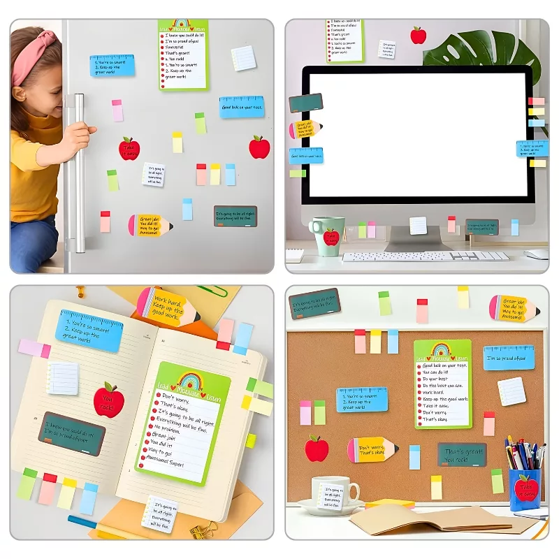 Beleuchten Sie jeden Schultag mit fröhlichen Haftnotizen. Kinder werden es lieben, verschiedene Formen zu verwenden, um Ideen festzuhalten. Farbige Designs fördern die Kreativität und helfen, wichtige Aufgaben nicht zu vergessen. Eltern können sich darauf verlassen, dass dieses Tool das Selbstvertrauen stärkt und jeden Schreibtisch ordentlich hält.