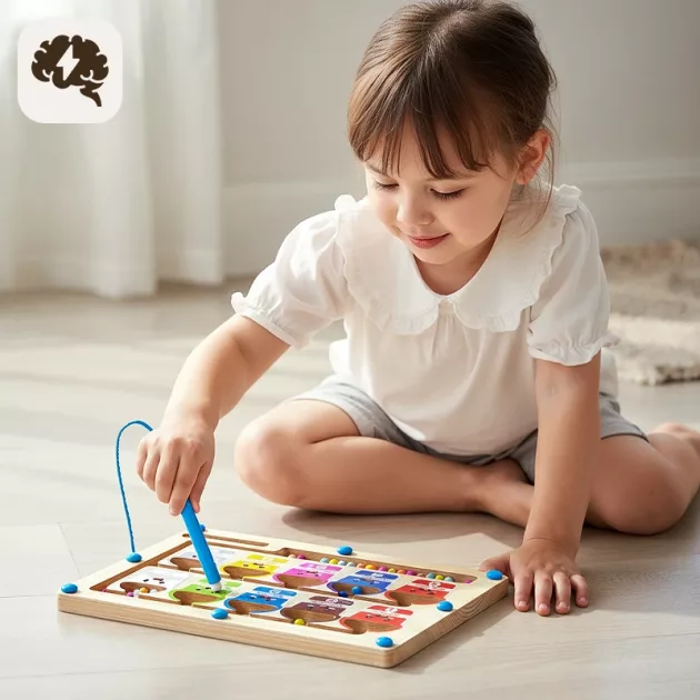 Frühe Fähigkeiten - Hände führen magnetische Perlen entlang farbenfroher Wege zu passenden Zonen. Jede Bewegung verbessert das Erkennen und stärkt grundlegende Fertigkeiten.