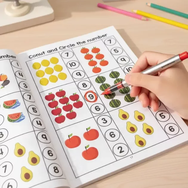 Zählen wurde durch dieses Arbeitsheft zum Spiel und nicht zur Pflicht. Meine Tochter lächelt und ruft stolz ihre Antworten aus.
