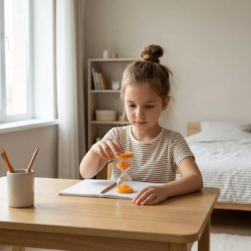 Dieser einfache Timer hat meinem Sohn Zeit besser erklärt als jede App. Jetzt duscht er, zieht sich an und packt seine Tasche innerhalb eines Umdrehens der Sanduhr.