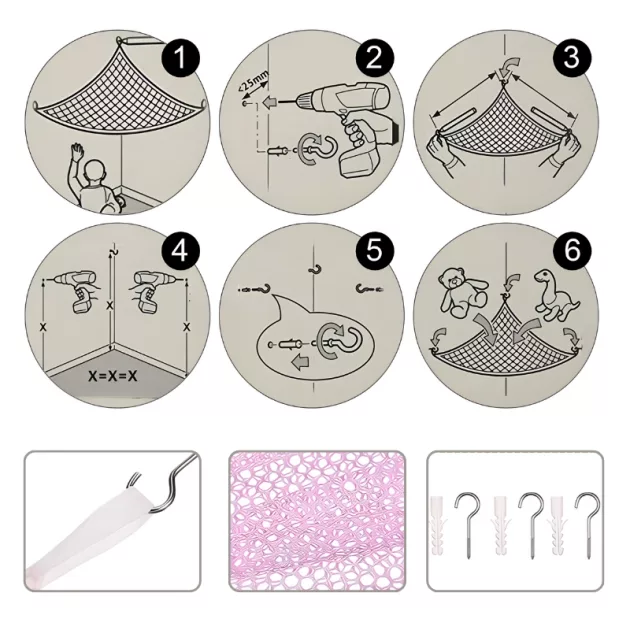 Hält viele Spielsachen und war mit den beigefügten Haken wirklich einfach aufzuhängen. Mein Sohn fügt jeden Tag neue Tiere hinzu.