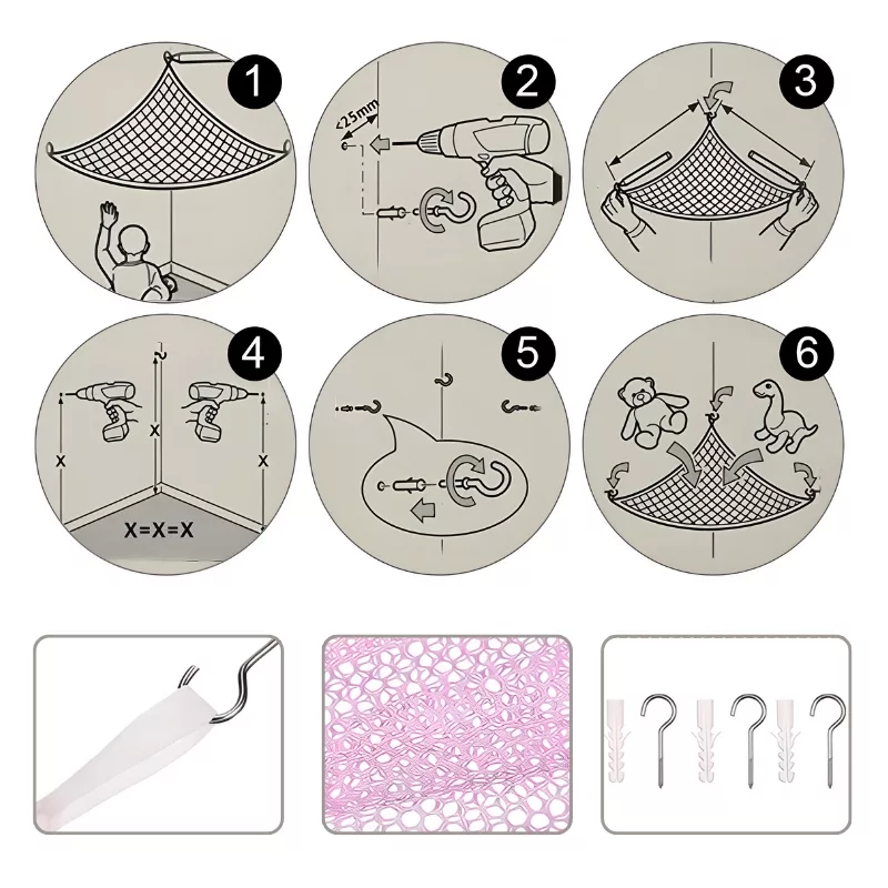 Das Netz ist stark und hält alle Lieblingsplüschtiere unserer Kinder. Perfekt, um alles zusammenzuhalten und trotzdem alles im Blick zu haben.