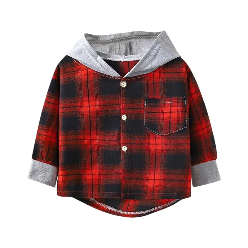 Weiches kariertes Hemd für jede Jahreszeit. Die Kapuze ist der Favorit und es gibt keine nervigen Etiketten, die meinen Sohn stören.