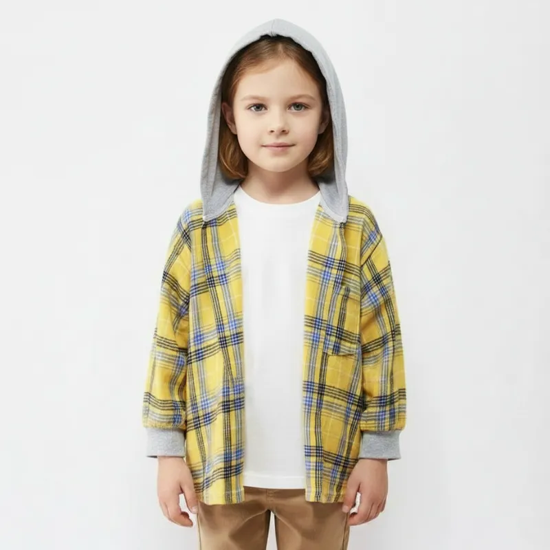 Kariertes Kapuzenhemd aus Baumwolle für Kinder