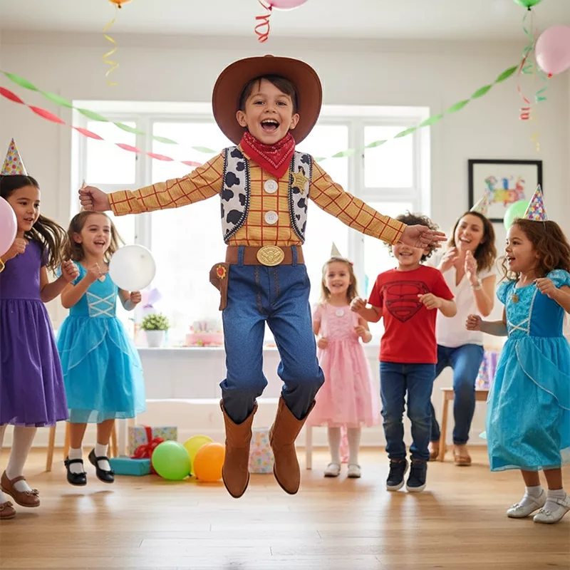 Lassen Sie Geschichten durch fantasievolles Verkleiden lebendig werden. Ihr Kind fühlt sich besonders in einem kompletten Cowboy-Outfit. Perfekt für Partys, Spielverabredungen und jedes festliche Ereignis. Schnelles Händewaschen hält das Kostüm sauber und bereit für Spaß.
