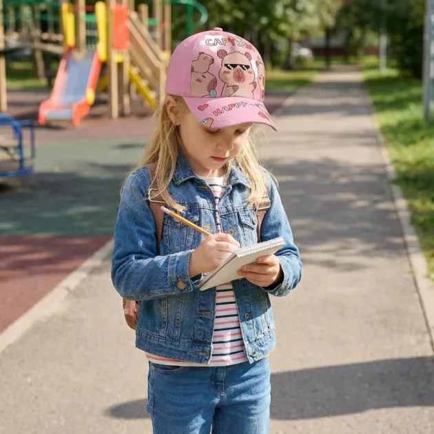Meine Tochter hat sich die Capybara-Mütze selbst ausgesucht und trägt sie jetzt bei jedem Spaziergang. Weicher Stoff, sanft zu ihrer Haut, und das Band hält sie sicher fest.