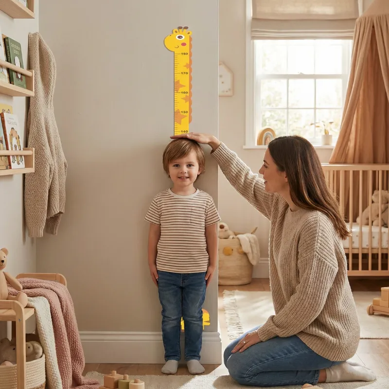 Wir haben die Giraffe gewählt und sie passt perfekt neben den Schrank. Opa markiert das Wachstum der Kinder bei jedem Besuch. Es fühlt sich bereits wie eine Tradition an.