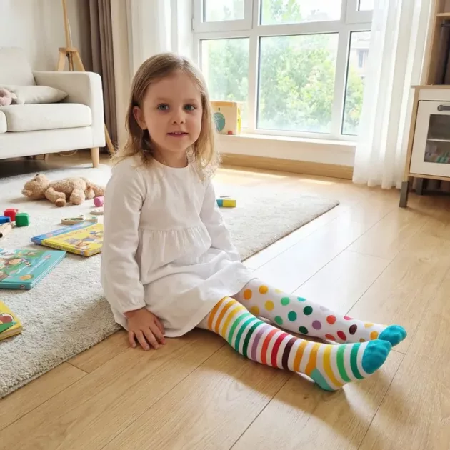 Kinder lieben es, sich jeden Tag zu bewegen und zu spielen. Diese Strumpfhosen sorgen mit fröhlichen Mustern und kräftigen Farben für zusätzliche Freude. Weicher, dehnbarer Stoff hält Füße und Beine auf Abenteuern wohlig warm. Eltern genießen einfaches Anziehen und weniger Stress zu Hause.