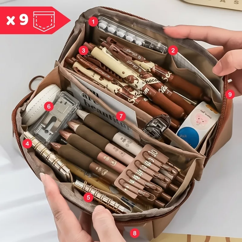 Ich benutze dieses Etui sowohl für meine Schulsachen als auch für Kunstbedarf. Es hält alles zusammen, und meine Freunde fragen immer, woher ich es habe.