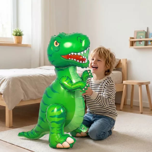 Der stehende Dino hat das Dekorieren super einfach gemacht. Ich habe ihn aufgeblasen, hingestellt und er hat unser Wohnzimmer sofort in eine lustige Dinosaurier-Party verwandelt.