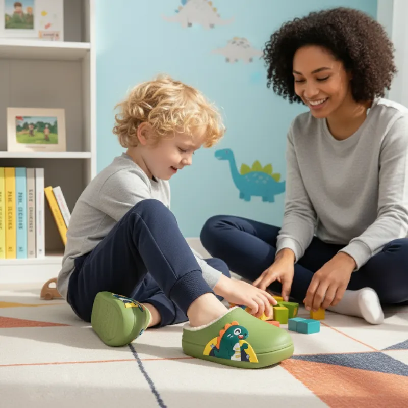 Meine Zwillinge lieben ihre lustigen Hausschuhe. Keine Beschwerden mehr über kalte Zehen, und außen wasserdicht bedeutet, dass sie nach Missgeschicken nicht muffig werden.