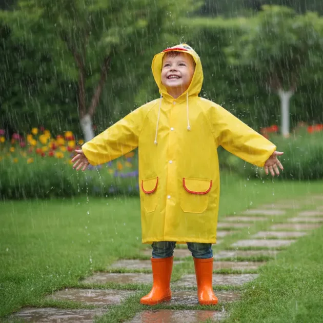 Er fühlt sich so weich an und passt meiner Tochter genau richtig. Sie rennt glücklich herum und ich muss mir keine Sorgen machen, dass sie nass wird.