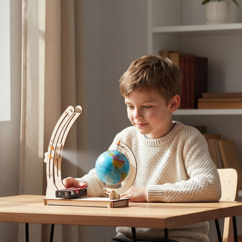 Mein kleiner Bruder hatte viel Spaß dabei, dieses Set zusammenzubauen. Er war ganz aufgeregt, als er selbst durch das Drehen der Kurbel sehen konnte, wie Tag und Nacht wechseln.