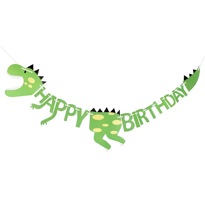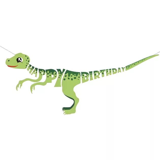 Meine Tochter wollte ein Dino-Motto, aber nichts Gruseliges. Diese Dinos sehen freundlich und süß aus und die Geburtstagsbotschaft war auf unseren Fotos gut lesbar.
