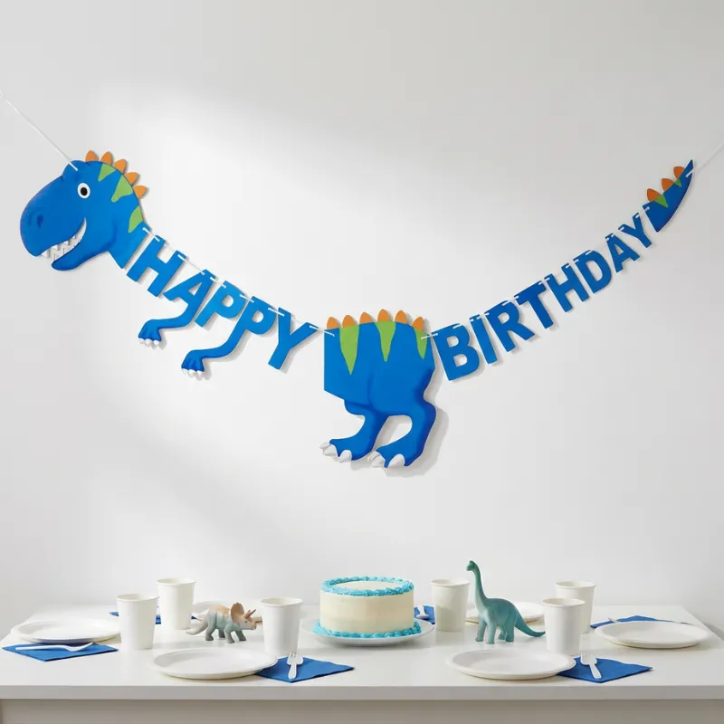 Meine Zwillinge sind dino-verrückt, daher kam dieses Banner super an. Wir haben es ohne Probleme von der Wand zum Desserttisch umgehängt, sah immer noch toll aus.
