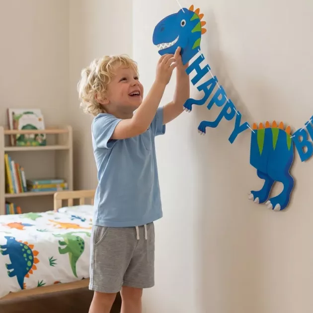 Helle Banner verwandeln schlichte Räume im Handumdrehen in aufregende prähistorische Szenen. Bunte Kreaturen regen die Fantasie an, während die Gäste staunend und willkommen geheißen ankommen. Ein einfaches Setup spart Planungszeit, sodass Familien freie Zeit für schöne Erinnerungen haben.