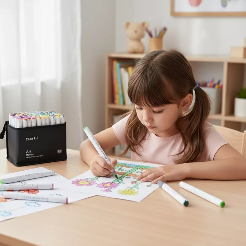 Doppelseitige Spitze - Wechseln Sie zwischen feinen Linien und breiten Strichen für jedes Projekt. Jede Spitze ermöglicht es jungen Künstlern, grenzenlos zu experimentieren und jeden Moment zu genießen.