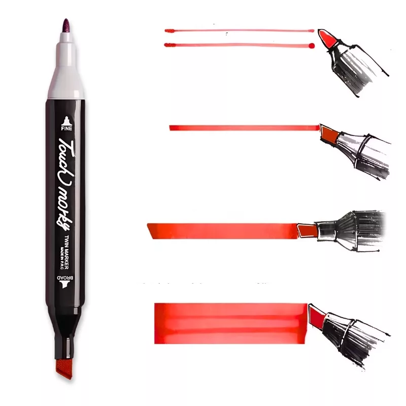 Vielseitigkeit durch Doppelspitzen - Wechseln Sie mühelos zwischen breiten Linien und feinen Details. Es sind keine zusätzlichen Utensilien nötig, denn jeder Marker beherrscht jeden Zeichenstil.