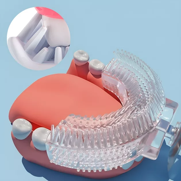 Effektiv - Dank des einzigartigen U-Form-Designs erreicht unsere Zahnbürste alle Ecken des Mundes. Sie entfernt hartnäckige Flecken und beugt Karies vor.