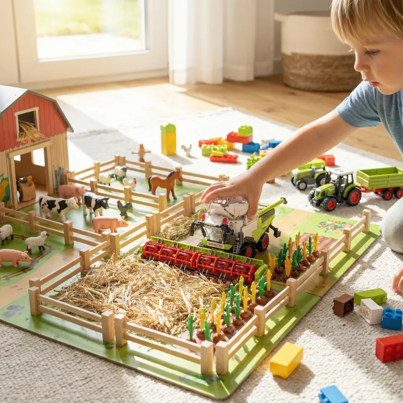Mein kleiner Bruder liebt dieses Bauernhof-Set. Die Teile lassen sich leicht zusammenstecken und er braucht nie Hilfe. Er will immer seinen neuesten Traktor zeigen.