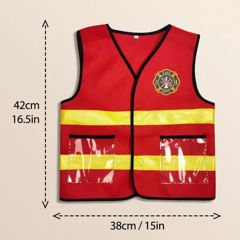 Die Weste und der Helm sehen genauso aus wie das Original! Mein kleiner Bruder liebt es, Feuerwehrmann zu spielen und unsere Kuscheltiere zu retten.