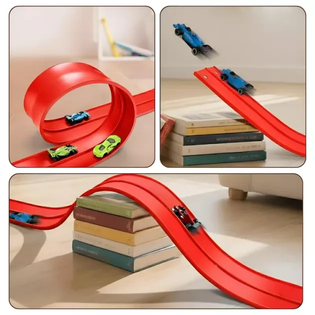 Individueller Streckenbau - Biegen und formen Sie die Strecke in unendlich viele aufregende Layouts. Kinder lieben es, jedes Mal neue Schleifen und spannende Wege zu erfinden.