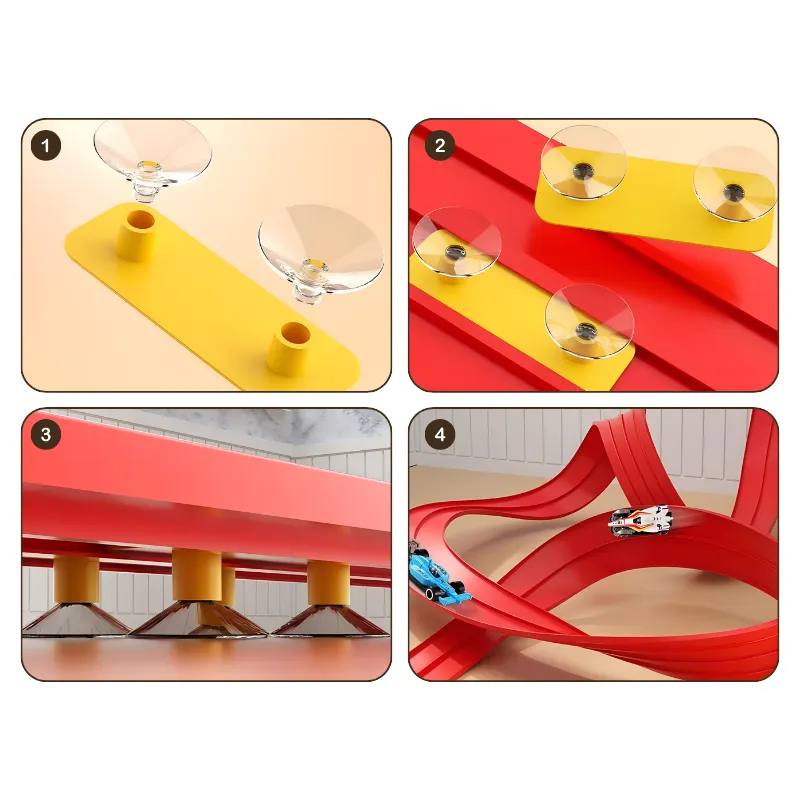 Dieses Rennstrecken-Set macht so viel Spaß zum Verdrehen und an Fenstern und Fliesen anzubringen! Ich renne stundenlang mit meinem Bruder und erfinde jedes Mal neue verrückte Strecken.