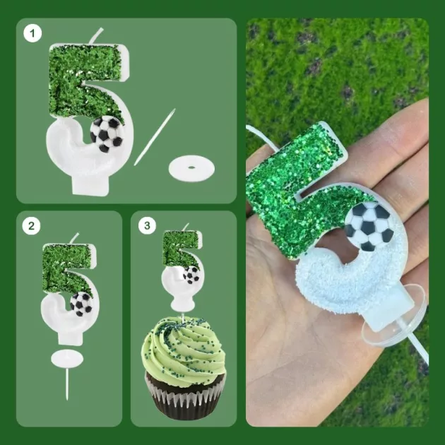 Einfaches Kuchen-Upgrade - Keine komplizierten Dekorationen mehr nötig, um Ihre Gäste zu beeindrucken. Fügen Sie einfach diese Kerze hinzu – für eine Fußballfeier, an die sich jeder erinnert.