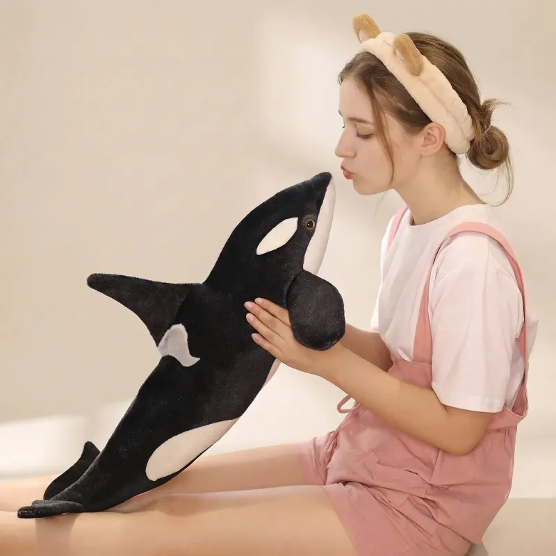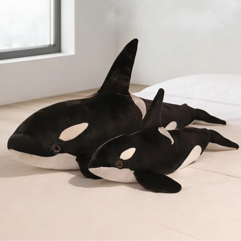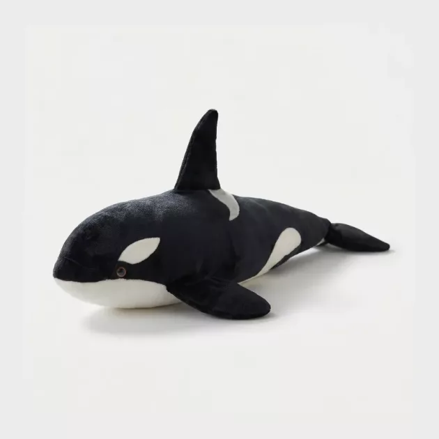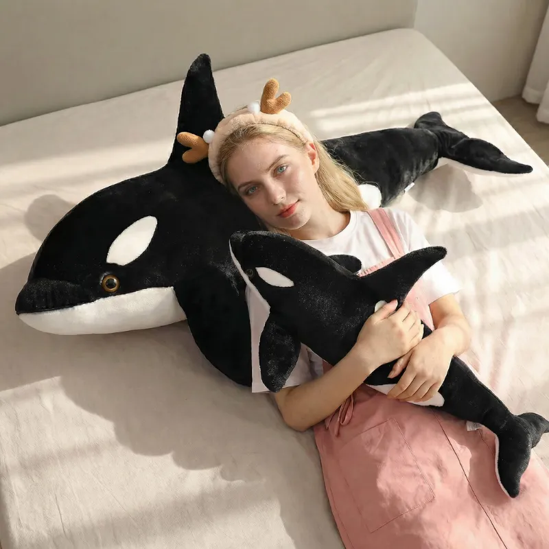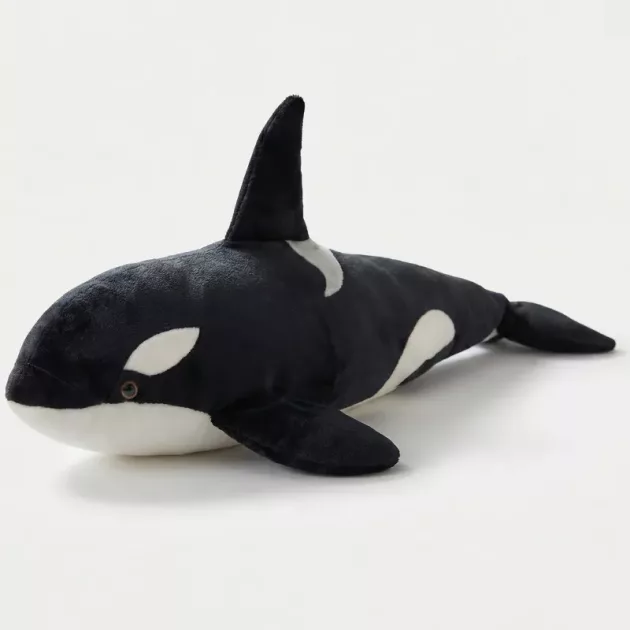 Der schwarze Wal ist unser neuer Lieblingskuschelfreund. Mein kleiner Cousin trägt ihn überall hin. Er ist groß genug, dass wir ihn beide gleichzeitig umarmen können!