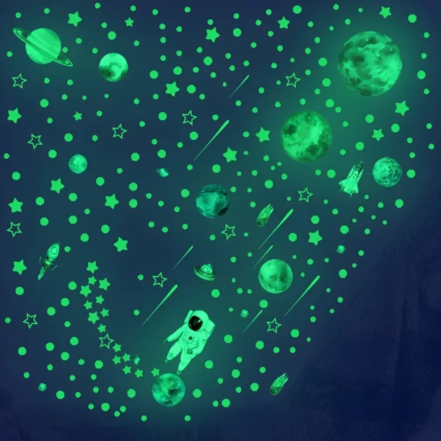 Diese Weltraumsticker haben das Zimmer meines Kindes in eine Fantasieg alaxie verwandelt. Sie liebt das Leuchten.