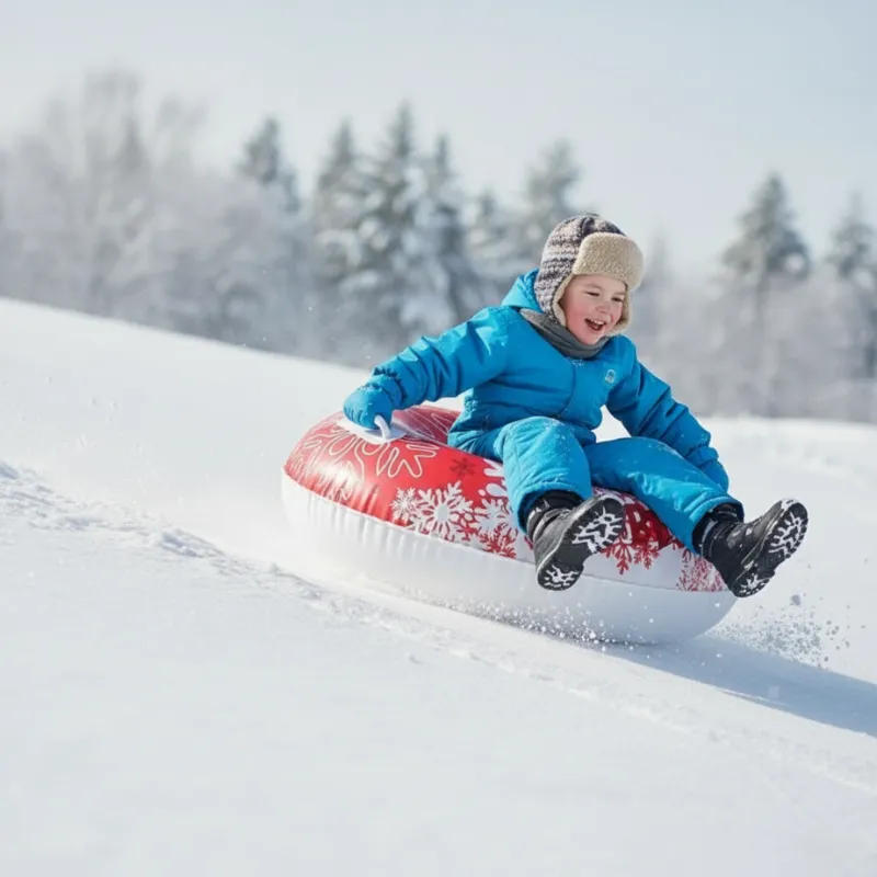 Dieser Schneereifen macht so viel Spaß! Die Griffe haben mir geholfen, den ganzen Weg den Hügel hinunter draufzubleiben. Außerdem ist er wirklich leicht aufzublasen, super schnell!