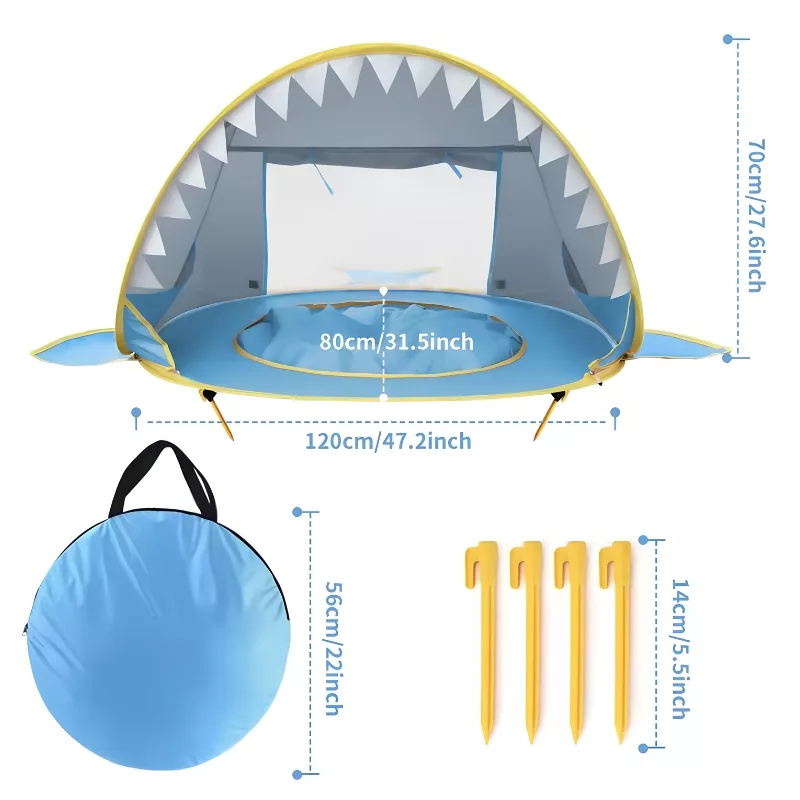 Dieses Zelt ist ein voller Erfolg! Mein Kleinkind genießt das Mini-Pool und bringt immer Spielzeug zum Zeitvertreib im Schatten mit. Überraschend geräumig für das geringe Gewicht.