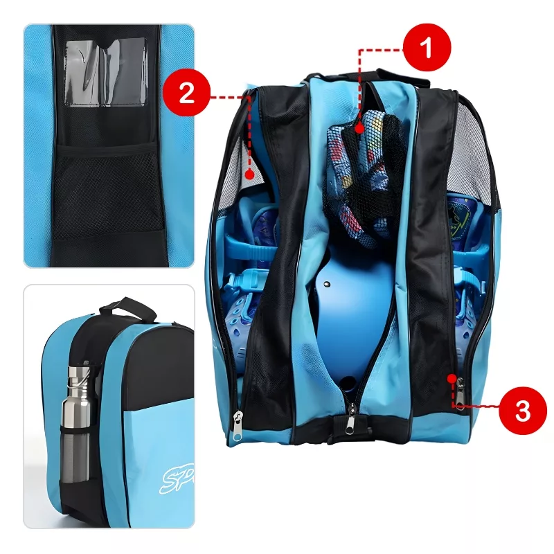Diese Skatetasche hilft meiner Tochter wirklich, ihre Handschuhe und ihren Helm getrennt aufzubewahren. Sie packt sie vor dem Eislauftraining jetzt gerne selbst ein.