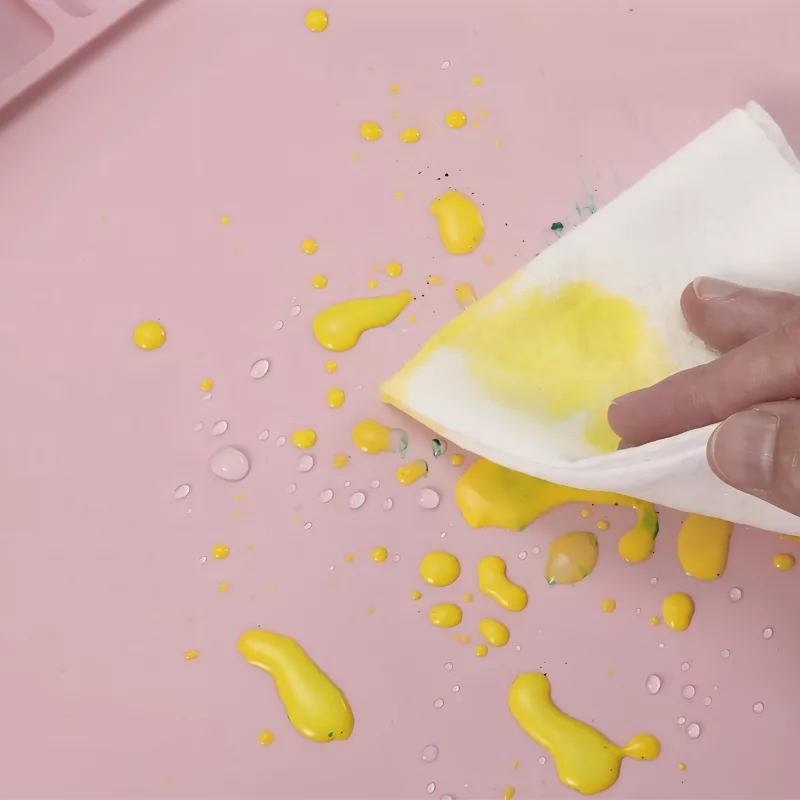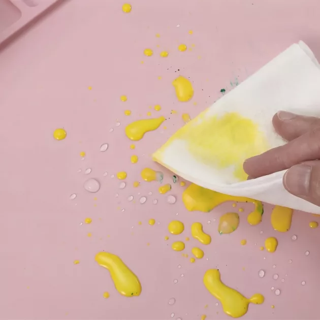 Dies ist die einzige Matte, die mit Farbe, Kleber und sogar Snacks klarkommt! Kurz abspülen und sie sieht jedes Mal wie neu aus.