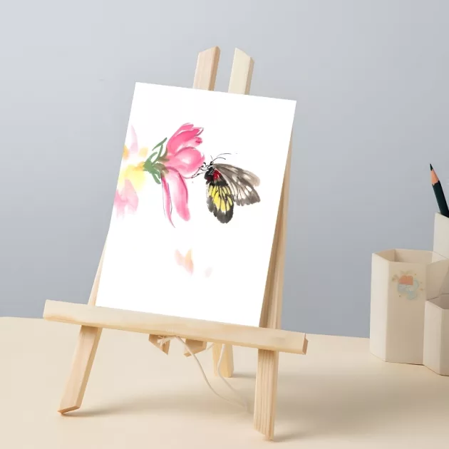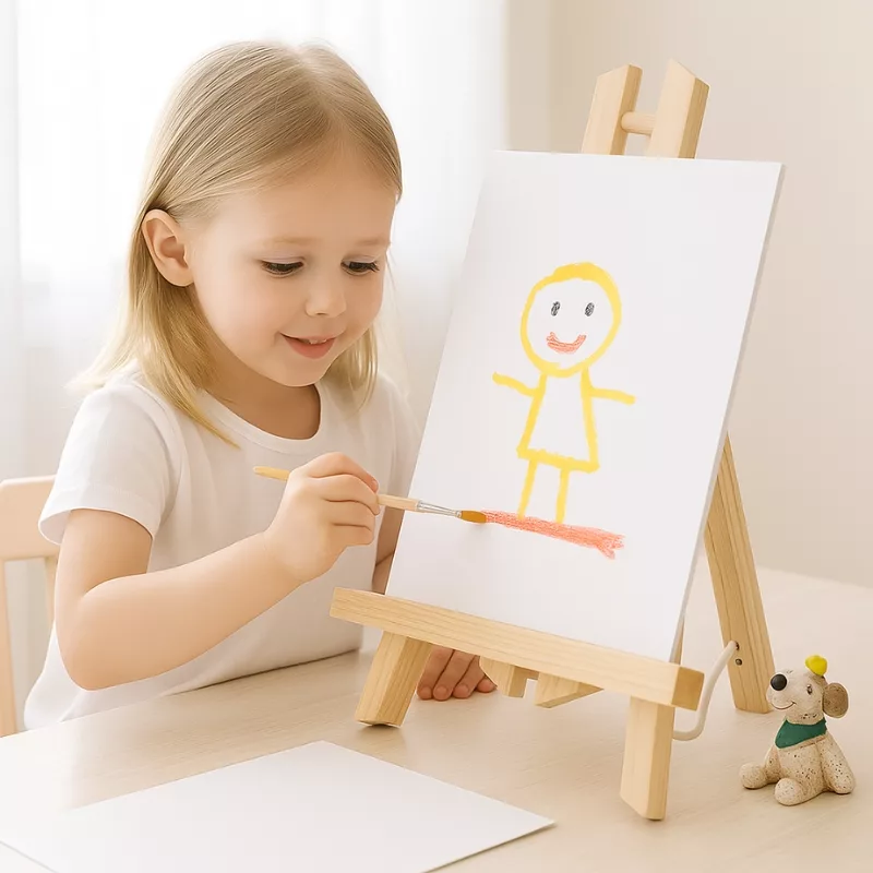 Diese Holzstaffelei verwandelt regnerische Nachmittage in kleine Kunstpartys. Kein Wackeln, leicht zu bewegen und sie hält schon seit Monaten.