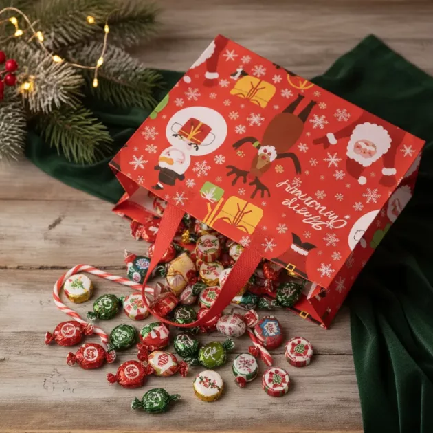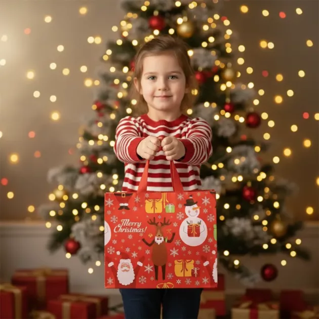 Die große Weihnachtstasche machte das Geschenkeverteilen an die Nachbarn einfach. Die fröhlichen Muster haben jedem ein Lächeln ins Gesicht gezaubert, noch bevor sie etwas ausgepackt haben.